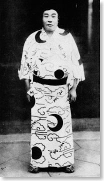 (右)更生浴衣を着ている王仁三郎